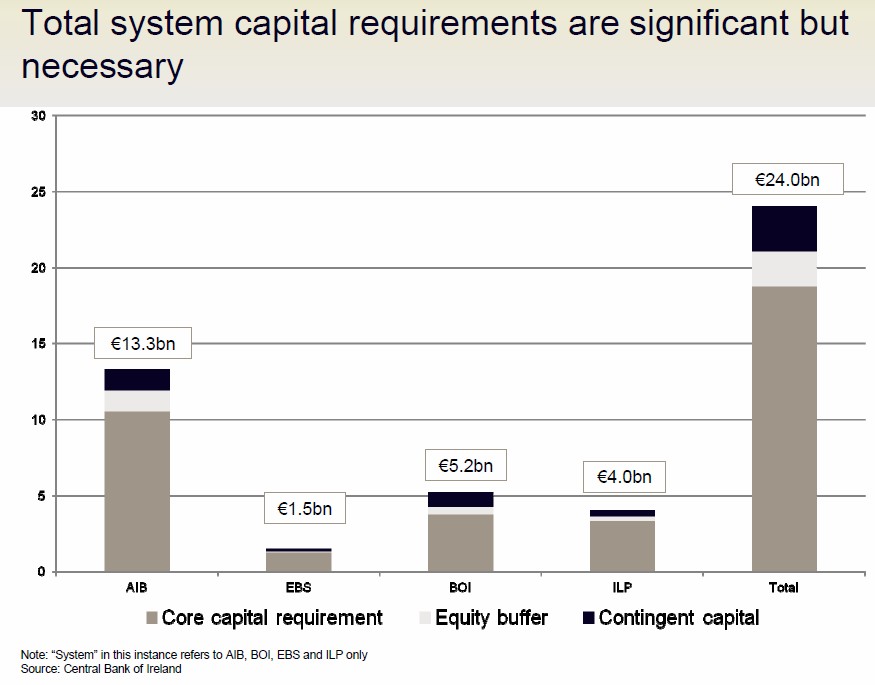 Las necesidades extra de capital de los bancos irlandeses alcanzan los 24.000 millones de euros, según los resultados de las pruebas de resistencia realizadas al sistema bancario del país, y que fueron presentados el jueves por el Banco Central de Irlanda.