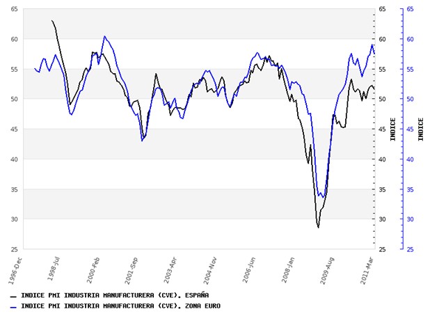 Concretamente, en marzo de 2010 el índice fue 51.85 y en marzo de este año 51.64. Esto demuestra la gran debilidad de la demanda interna, ya que ni siquiera el buen comportamiento del sector exportador es capaz de sostener crecimientos firmes de la industria.