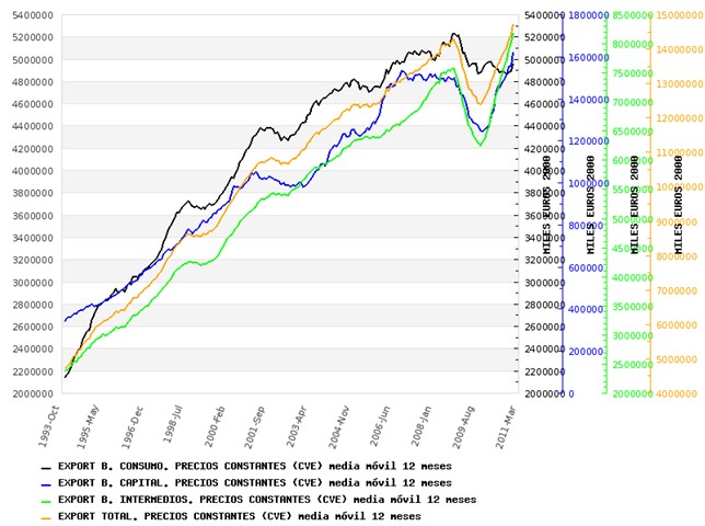 Para los próximos meses las exportaciones parece que seguirán una línea cuando menos moderadamente expansiva, acorde a la evolución de la demanda europea, pero a más largo plazo, cuando el BCE suba tipos y la economía europea empiece a enfriarse, no podremos confiar en que la demanda exterior siga tirando de la industria.