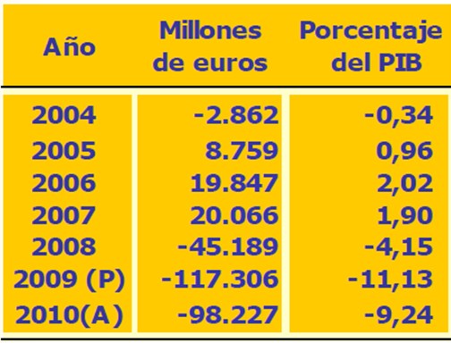 Y es que, con la excusa de combatir la crisis a base de "planes de estímulo", el Gobierno decidió echar mano a los 20.066 millones de euros de superávit registrados en 2007 para, posteriormente, incurrir en un déficit estructural de 45.189 millones en 2008, 117.306 millones en 2009, 98.227 millones en 2010 y algo más de 60.000 millones en 2011 (si cumple sus previsiones).