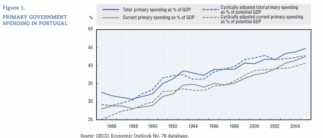 De este modo, se comprueba que los gobiernos portugueses evitaron todo rigor presupuestario durante la época de bonanza sino más bien lo contrario. El problema es que este persistente déficit a base de gasto público contribuyó a impulsar todavía más las ya de por sí elevadas tensiones inflacionistas propias de Portugal.