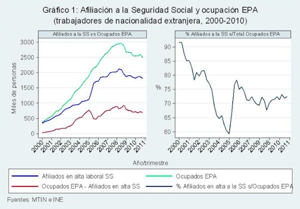 En aquel momento se pidió a los extranjeros en España que presentaran un contrato laboral para poder obtener papeles. Evidentemente, aquéllo tuvo un efecto llamada y provocó que aumentaran las altas en el sistema de la Seguridad Social. Sin embargo, cuando se acabó la política de la zanahoria (regularización) y llegó la del palo (multas a las empresas que contraten irregularmente) poco a poco volvió a crecer el número de empleados en situación irregular.