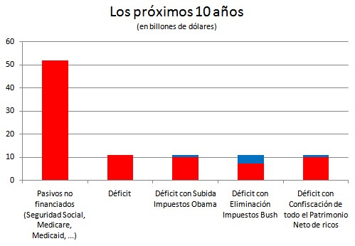 Es más, según Tino Sanandaji, los ricos en Estados Unidos poseen en su conjunto un patrimonio neto de 800.000 millones de dólares. De este modo, aunque el Gobierno les confiscara todo, el efecto presupuestario final sería casi idéntico a la propuesta de Obama (sin contar, claro está, el impacto enormemente negativo que ello tendría para la economía).