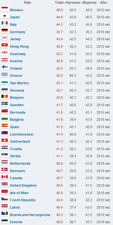 Bien, pues aquí tienen una lista con los países que tienen una media de edad por encima de 35. Juzguen ustedes mismos y observen todos los que están por encima de 40 años, en marrón. El resto en esta web.