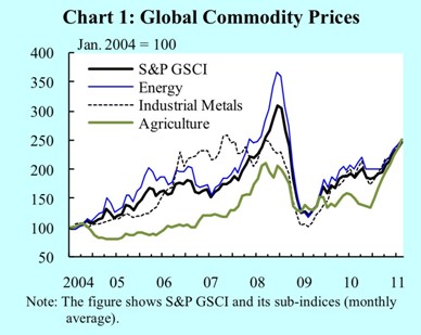 Así pues, la clave de este estudio radica en que, por primera vez -y sin que sirva de precedente- un importante banco central de la talla del nipón entona el mea culpa al reconocer explícitamente la responsabilidad de los banqueros centrales en el alza de precios. Así, de su estudio se extrate que, ya sea a base de incentivar una demanda manipulada o una especulación financiera desconectada de las expectativas del libre mercado, las expansiones monetarias aplicadas por los bancos centrales han sido un factor crucial en el aumento del precio de las materias primas.