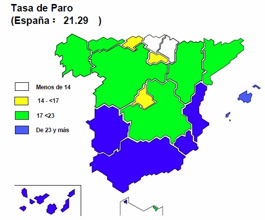 Sin embargo, el drama del paro no golpea con igual intensidad en toda España. Así, seis regiones -casi un tercio del país- registran una tasa que oscila entre el 25% y el 30%, lo cual significa que más de una cuarta parte de su fuerza laboral se encuentra sin trabajo. Andalucía, con una tasa del 29,7%, lidera este particular ranking, seguida de Canarias (28,5%), Ceuta (26,4%), Murcia (26,2%), Baleares (25,4%) y Extremadura (25%).