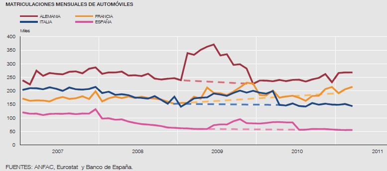 En la actualidad, el número de adquisiciones de vehículos sigue siendo "muy inferior a las realizadas en 2007". Así, "el hecho de que el número de matriculaciones retorne a unas cifras muy parecidas a las del inicio de los programas sugiere que el impacto que ha predominado ha sido un impulso temporal en la demanda de vehículos".