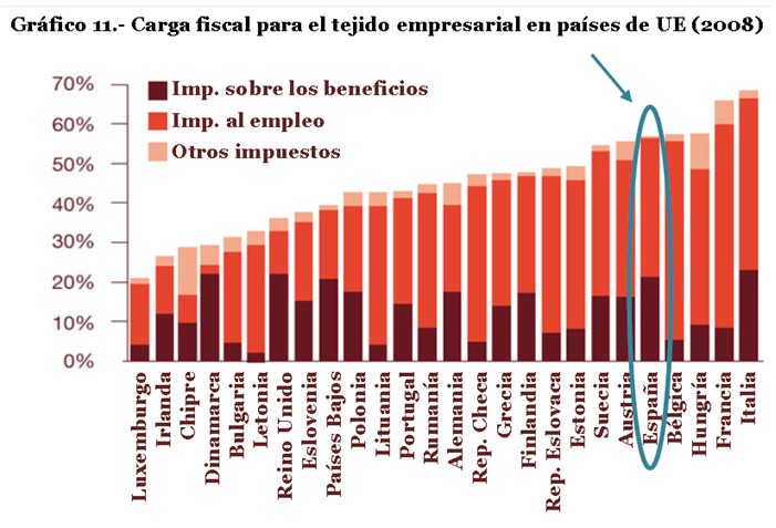 Sin embargo, un descenso de la carga fiscal sobre las empresas españolas podría originar mayores ingresos por varias vías: fomentando una mayor creación de empresas domésticas, atrayendo empresas de fuera, y ayudando a crear empleo y mayor crecimiento económico.
