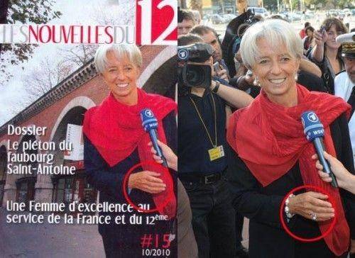 El pasado noviembre, The Daily Telegraph destapó el escándalo de las joyas de la ministra. Ella aparecía en Nouvelles du 12, sonriente y haciendo campaña muy correcta. Hasta que se descubrió que le habían borrado las ostentosas joyas que lucía en el momento de la fotografía.