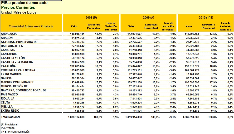 Estas tres regiones tan sólo suman el 21,5% del PIB regional -menos de la mitad respecto a 2008- , mientras que la suma de sus Presupuestos asciende a 47.439 millones de euros (una brutal caída del -46,6% respecto a hace tres años), apenas el 26% del total autonómico.