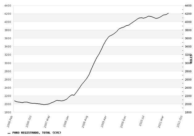 La estabilización en el número de parados que se vio en el segundo semestre de 2010 no era sino un efecto retardado de las medidas de estímulo que se truncaron de forma súbita con la crisis de deuda de mayo de 2010. Ahora, España asiste a los efectos sobre el empleo del nuevo desplome de la economía que comenzó hace 10 meses.