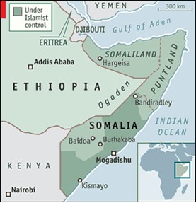 Los somalíes viven sin un gobierno efectivo a escala nacional desde 1991. De todos los estados que se califican de "fallidos", es el único que ha reemplazado el gobierno centralizado por la anarquía. Tras el colapso de la dictadura que gobernaba el país hasta esa fecha, comenzó una guerra civil que duró hasta 1995 entre diversas facciones que luchaban para hacerse con el poder de un nuevo gobierno central que, finalmente, no vio la luz.