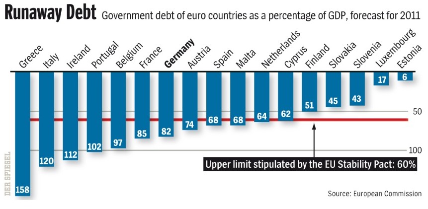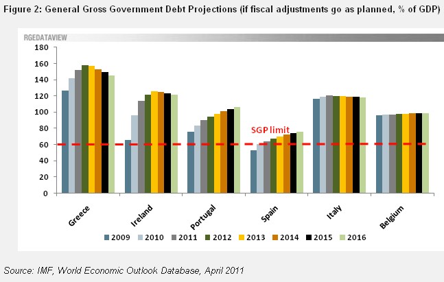 El afamado profesor de la Universidad de Nueva York Nouriel Roubini estima ya en un 30% la posibilidad de que la zona euro sufra algún tipo de ruptura en un horizonte máximo de cinco años. "Está claro que la pesada carga de deuda pública y privada en algunos países de la periferia (Grecia, Irlanda y Portugal) es tan grande que una reestructuración será inevitable. Esto exacerbará los conflictos entre el centro (ahorradores) y le periferia (deudores)" de la Unión Monetaria.