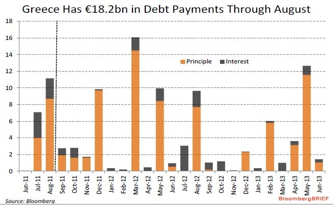 "El quinto tramo del rescate de 110.000 millones está bloqueado hasta mediados de julio. Los 12.000 millones se pagarán a mediados de julio si se cumplen las condiciones, si se respalda el plan (de ajuste). Y vamos a relanzar un segundo plan para el futuro, probablemente de 80.000 millones de euros", explicó Reynders. Pero el problema sigue siendo el mismo: sin ajuste adicional no habrá dinero.