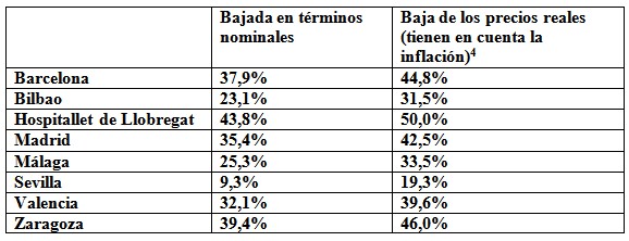 La bajada media de los precios de los pisos en las grandes zonas urbanas de España ha sido, por tanto, la siguiente: