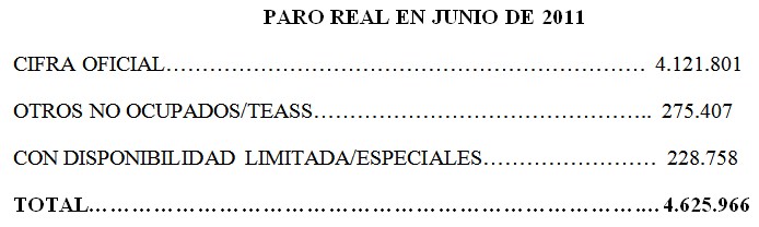 De este modo, el número real de parados -sumando ambos epígrafes- asciende a un total de 4.625.966 en junio, con lo que Trabajo oculta a 504.165 desempleados en las listas oficiales. Esto implica que el número de parados descendió en algo más de 38.534 personas respecto al desempleo real (sin maquillaje estadístico) de mayo. Pero, tal y como se indicó anteriormente, una vez eliminado el efecto veraniego, el paro creció en 31.026 personas respecto al dato desestacionalizado de mayo. Es decir, la tendencia laboral sigue siendo negativa, ya que las cifras oficiales tan sólo mejoran de forma temporal como consecuencia del período estival.