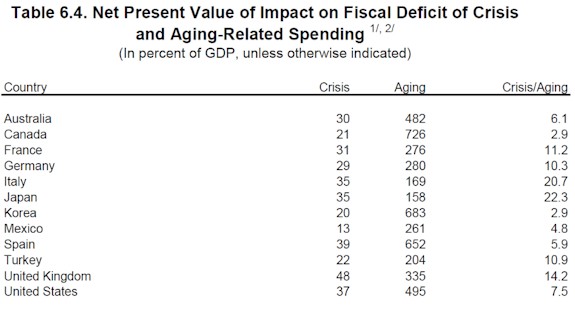 En la terminología del FMI, estos activos son "pasivos contingentes u obligaciones no financiadas". Dentro de la OCDE, España es uno de los que está en peor situación en este aspecto, porque la cifra de este tipo de pasivos llega al 652%.
