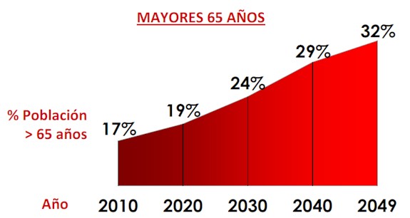 La evolución demográfica incrementará el gasto público especialmente en dos aspectos: la sanidad y las pensiones. En las últimas semanas, se han sucedido las noticias sobre los problemas de pago de las autonomías a sus proveedores del sistema sanitario (se ha llegado a hablar de facturas que se pagaban a 500 ó 600 días). Incluso, The Wall Street Journal ha publicado un artículo sobre el tema, alertando del peso creciente de la sanidad española.