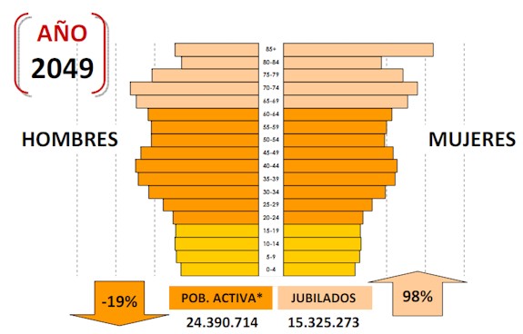 Tasa de natalidad, envejecimiento y pirámide de población de España en 2050 (Fuente: Mapfre)