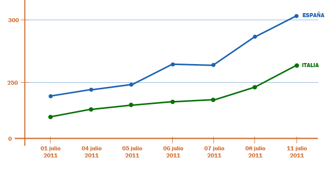 Todas estas cifras (el 6% de subida en un solo día; los 50 puntos de salto; los 340 puntos a mitad de la sesión y los 335 del cierre son récord absoluto. Nunca la deuda española había sufrido tanto en una sola sesión. Y España no se ha quedado sola, puesto que los bonos italianos han tenido una evolución similar. Desde que en abril de 2010 comenzara la crisis de deuda en toda la eurozona, los titulares sobre los máximos alcanzados por las primas de riesgo se han sucedido, referidos a Grecia, Portugal, España o Italia. Esto ha provocado que muchas de estas noticias pasen desapercibidas para el ciudadano, que siente que esta historia ya la ha escuchado.