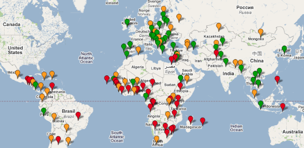 Como se puede ver en el siguiente gráfico, los países que sufren más pérdidas económicas por criminalidad (en color rojo) tienden a ser los más pobres, situados especialmente en África, Centroamérica y el sureste asiático. Numerosos estudios han demostrado empíricamente los efectos negativos que tiene la violencia sobre el crecimiento económico.