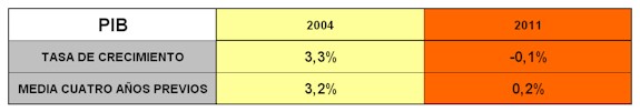 - Menos crecimiento: Entre 2001 y 2004, España crecía alrededor del 3% y ahora casi no es capaz de llegar al 0%. En 2007 comenzó una recesión a la que Zapatero no supo enfrentarse (no reconoció la crisis hasta el verano del 2008). En el año 2009, la economía española perdió un 3,7%, la mayor caída en dos décadas. En los últimos dos años ha conseguido recuperar algo, pero todavía no ha logrado salir del pozo, algo que sí han conseguido sus socios de la UE.