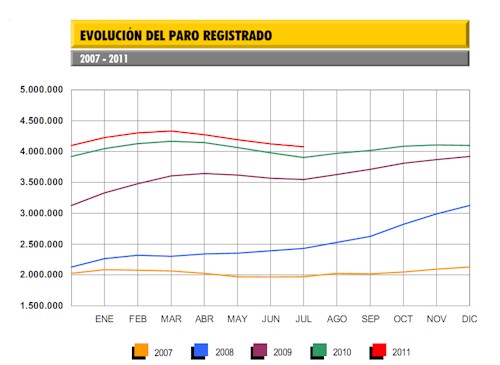 Según los datos oficiales que Trabajo ha presentado este martes, en el mes de julio hay 42.059 desempleados menos que en junio. Este dato sitúa el número total de parados registrados en las oficinas de los servicios públicos de empleo el pasado mes en 4.079.742 millones de personas. Otro dato oficial que hay que tener en cuenta es que en términos interanuales el paro ha aumentado en 171.164 personas (+4,38%).