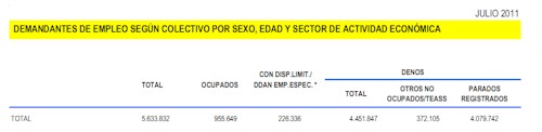Trabajo siempre ha utilizado estas categorías para maquillar en parte la cifra de parados. Pero en este mes de julio ese maquillaje ha llegado a niveles difíciles de recordar. Trabajo ha metido dentro de los "no ocupados/teass" a 96.698 personas más en julio para utilizar las estadísticas a su favor antes de las elecciones. Si en junio (ver imagen inferior) los que acudían a cursos de formación y demás actividades eran 275.407 personas ahora hay 372.105 personas en esta categoría.