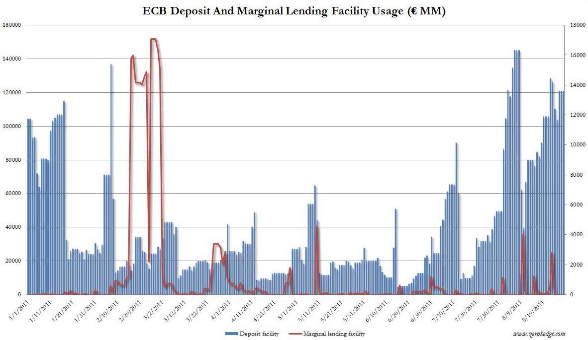 Así pues, al menos hasta el momento, los datos demuestran que la banca europea sí atraviesa graves problemas de liquidez, en contra de lo que afirma Trichet. Cuestión aparte es saber si las entidades precisarán o no de un nuevo salvavidas público tal y como reclama ahora Lagarde.