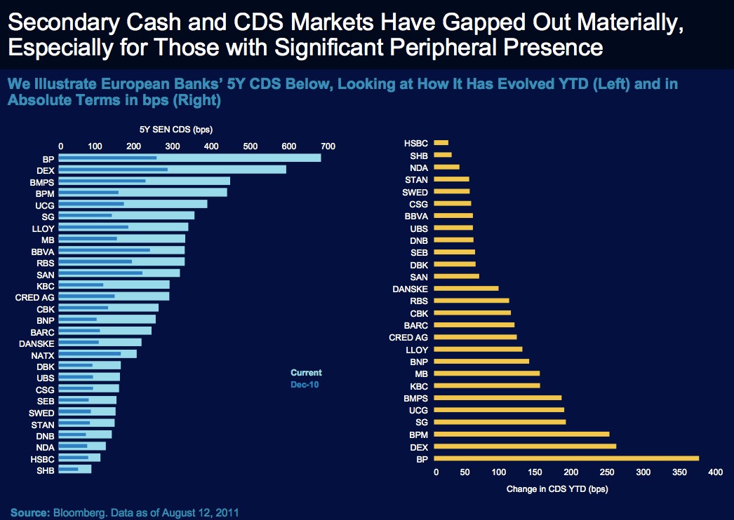 Morgan Stanley aclara, en gran medida, dicho debate. Los datos muestran que el mercado interbancario europeo -donde los bancos se prestan dinero entre sí- se secó por completo este verano, síntoma de la gran desconfianza existente como resultado de la enorme exposición que presentan numerosas entidades a la deuda pública de los países más débiles de la zona euro. La banca europea ha sido, prácticamente, excluida del mercado de capitales en los últimos meses, arrojando así una foto muy similar a la acontecida tras la quiebra del banco estadounidense Lehman Brothers en 2008.