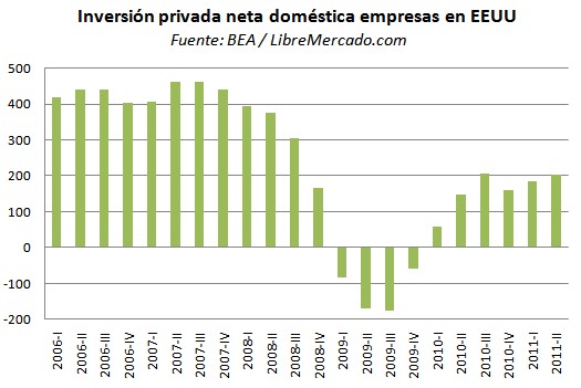 Pues bien, la evolución de esta variable en los últimos años tampoco ofrece un panorama positivo. Tras caer la inversión neta en todos los trimestres de 2009, la leve recuperación en 2010 y 2011 todavía está muy lejos de alcanzar las tasas de los años anteriores.