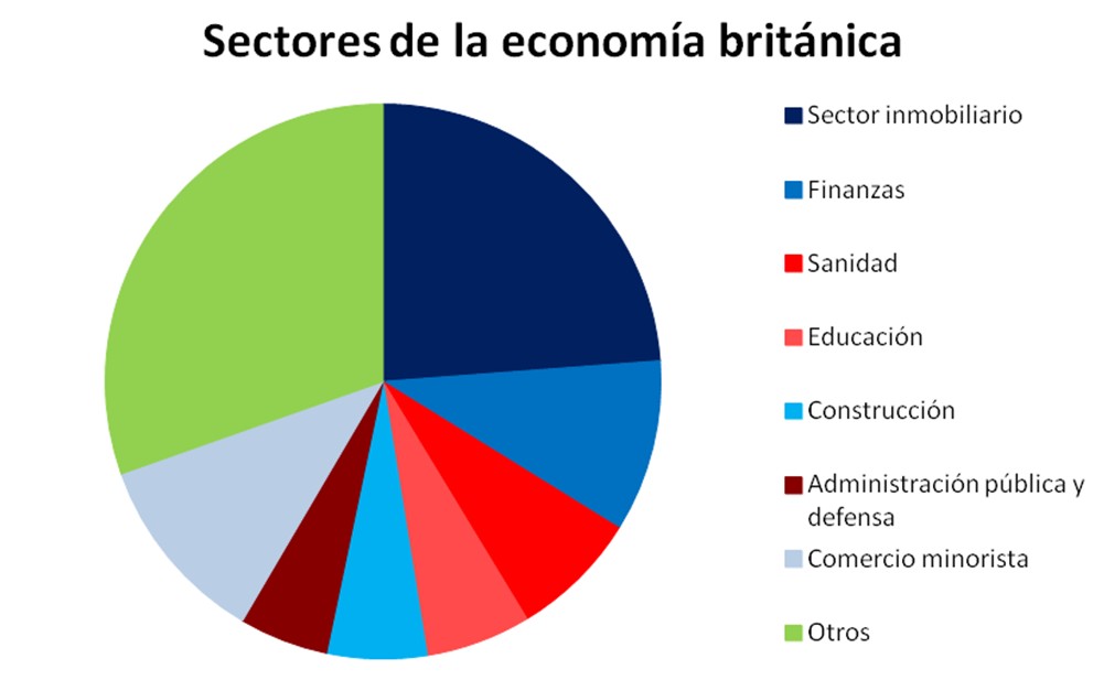 Analizando los sectores de la economía británica se observa que tres de los ocho mayores (sector inmobiliario, servicios financieros y construcción), que representan conjuntamente el 39% del PIB, son incapaces de crecer ahora que el sector privado ya no se endeuda. Otros tres sectores (sanidad, educación y administración pública y defensa) "representan un 19% adicional, y no pueden expandirse ahora que el crecimiento del gasto público es una cosa del pasado."