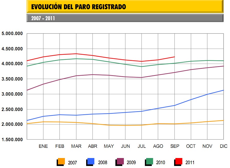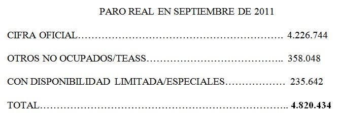 Por otro lado, España acumulaba al terminar septiembre un total de 4.226.744 desempleados, según los datos oficiales. Sin embargo, en realidad, el número de parados asciende hasta los 4.820.434, casi 594.000 más que la cifra oficial. Esta diferencia se debe al tradicional maquillaje estadístico que aplica el Gobierno desde 2008 para ocultar a un gran número de parados.