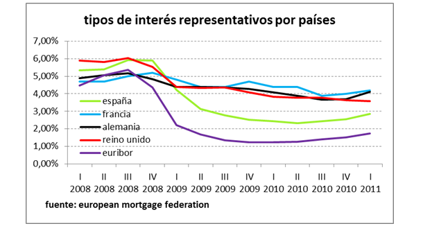 El siguiente cuadro muestra una comparativa de los tipos de interés más representativos en diferentes países de la Unión Europea.