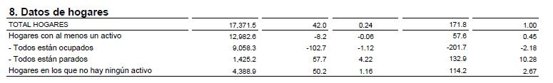 En comparativa interanual, el número de hogares con todos sus activos en paro crece en 132.900 y el de los que tienen todos sus activos ocupados disminuye en 201.700.