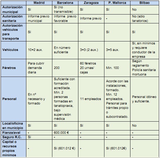Los fallos de este mercado vienen fundamentalmente de la regulación del sector, que se encuentra obsoleta y dificulta la entrada de nuevos operadores que compitan en ese mercado libremente. Dada la amplia oferta de actividades que lleva consigo la muerte (funeral, cremación, tanatorios, ceremonia, tanatopraxia, tanatoestética), su normativa reguladora está dispersa en cuanto a la actividad que desarrollan y a la competencia de cada una de sus funciones con respecto a la Administración General de Estado, comunidades autónomas y entidades locales.