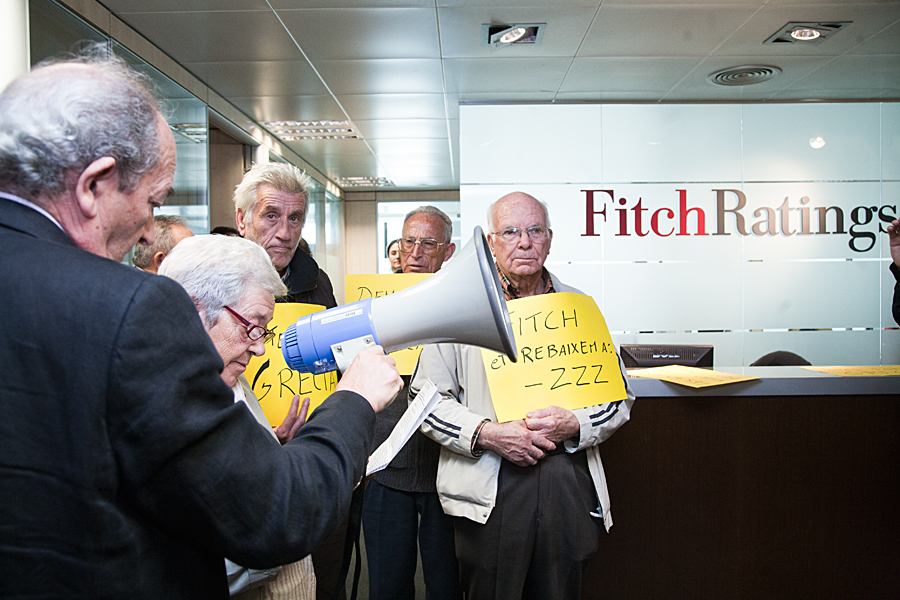 Los trabajadores de la sede de la agencia en el Paseo de Gracia de Barcelona han visto cómo las melenas blancas monopolizaban la atención de esta oficina financiera, informa Efe. Los manifestantes han protestado durante más de media hora y de forma pacífica, según un portavoz de la agencia Fitch.