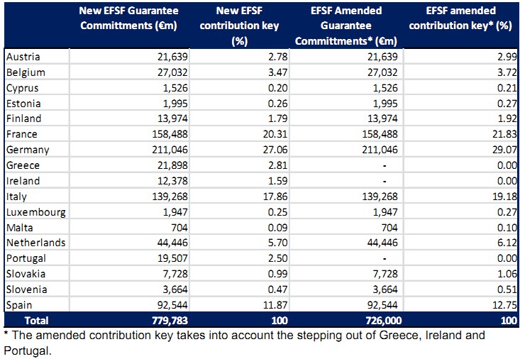El actual Fondo de rescate europeo cuenta con una capacidad crediticia de 440.000 millones de euros en total, pero en estos momentos tan sólo disponde de unos 250.000 millones tras restar los compromisos adquiridos con Grecia, Irlanda y Portugal. Insuficiente para rescatar a España, Italia y bancos en problemas.
