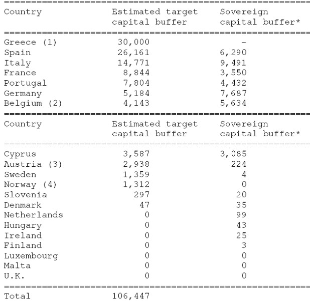 El pasado 26 de octubre, la Autoridad Bancaria Europea (EBA, por sus siglas en inglés) anunciaba las nuevas necesidades de capital de la banca europea. Como resultado de los ejercicios realizados, los grandes bancos españoles tendrán que incrementar sus niveles de capitalización en unos 26.000 millones de euros antes de julio de 2012. Esta cantidad representa alrededor de un cuarto de las necesidades de capital estimadas para la banca europea en su conjunto (106.000 millones).