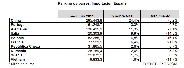 Por otra parte, durante los mismos meses, pese a que la importación de muebles ha descendido un 6,5%, España importó muebles por valor de 1.213.166,2 miles de euros. Estos datos arrojan un déficit de 561.630,2 miles de euros. En el año 2000 la tasa de cobertura era del 161% frente al 53,7% en el primer semestre de 2011.