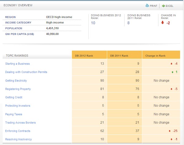Doing Business 2011. Cuadro de Irlanda (Fuente: Banco Mundial)