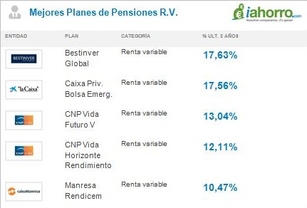 En la siguiente tabla veremos los mejores planes de pensiones que ofrece el comparador de planes de pensiones de iAhorro.com y Libertad Digital, en base a su rentabilidad anualizada a 3 años.