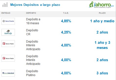De hecho, actualmente ya no se observan ofertas tan atractivas como las de antes, pero todavía quedan opciones interesantes a 2 años como el Depósito Flexible de Oficina Directa del Banco Pastor.