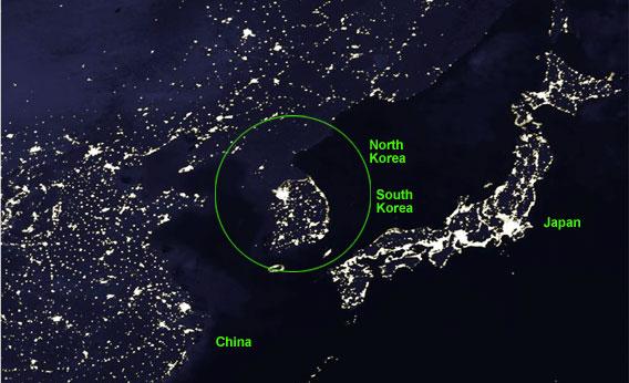 Y, por otro, la penumbra en la que, literalmente, aún vive sumida Corea del Norte, muestra de su subdesarrollo crónico. El país está a oscuras, tal y como reflejan las imágenes de la península tomadas por satélite, y la paupérrima imagen del interior del país (ver galería de imágenes de Corea del Norte).