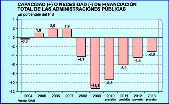 La cifra clave es el 4,4%. Éste es el objetivo de déficit comprometido con la UE para 2012. Superarlo pondría en una complicada situación a España, tanto ante sus socios como frente a los inversores internacionales. En teoría, 2011 acabará con un déficit del 6% (así lo afirman las previsiones del Gobierno); esto dejaría un agujero de 16.500 millones para el próximo ejercicio.