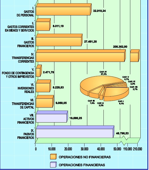 Si se analiza el Presupuesto por políticas de gasto, la situación no se aclara ni mucho menos. Deuda, pensiones y desempleo siguen siendo intocables. Los gastos de personal suman 32.919 millones. Ni mucho menos un recorte del 5-10% en esta cuestión revolvería los problemas. Y las inversiones reales suman 8.230 millones, por lo que tampoco por esta vía es posible conseguir un ahorro apreciable.