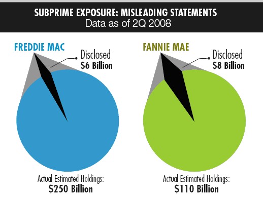 Tras la auditoría llevada a cabo por la SEC, el organismo supervisor ha llegado a la conclusión de que las dos grandes entidades inmobiliarias escondían casi 10 veces más activos tóxicos (hipotecas subprime) de lo que informaron, la enésima irregularidad contable de estas empresas.