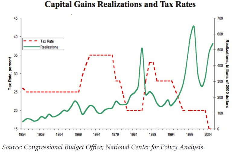 A estas conclusiones llegan algunos estudios, que han investigado los efectos de disminuciones del tipo impositivo sobre las ganancias de capital en Estados Unidos y la realización de dichas ganancias, ofreciendo como resultado que por cada punto porcentual que se redujo el tipo impositivo se incrementó un 10,32% las ganancias de capital, con lo que el Estado logró aumentar la recaudación tributaria.