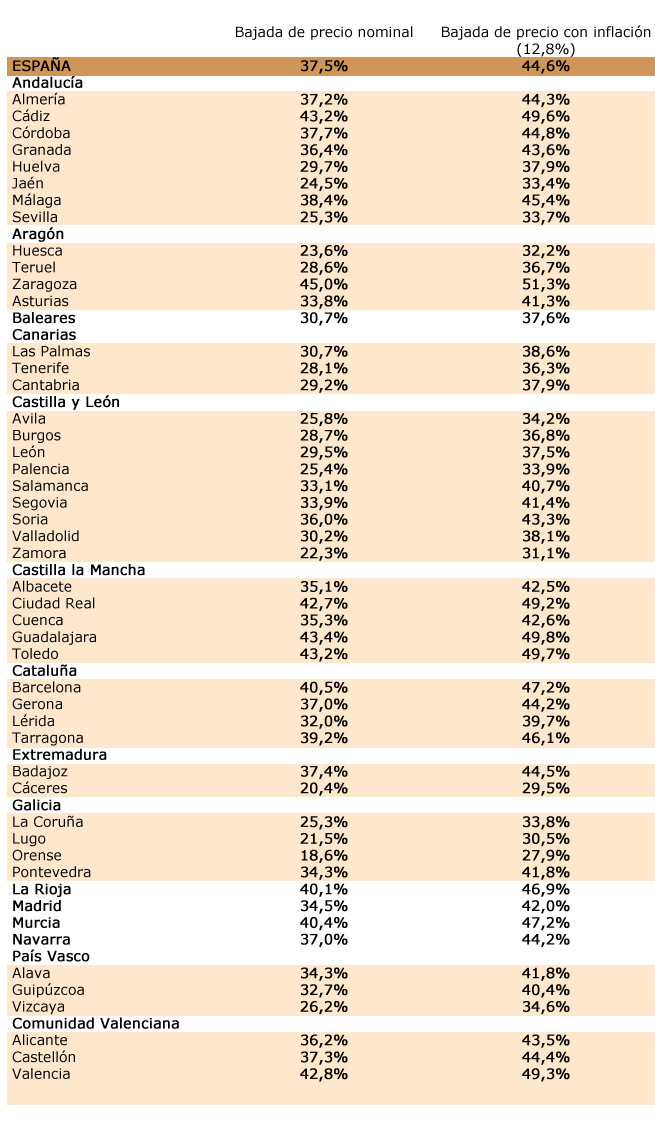 - Las bajadas referidas son las bajadas mínimas que se han dado en cada provincia: la realidad ha de ser aún más dura.