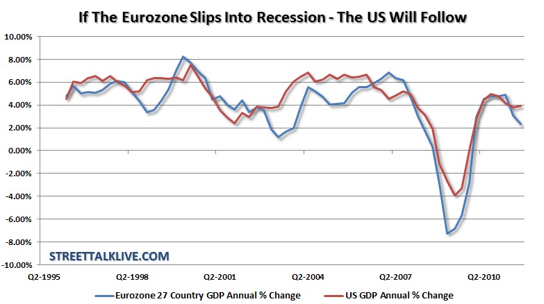 Y es que, si el PIB de la zona euro se desploma más de un 4%, la historia demuestra que EEUU se enfrentaría a una nueva recesión, arrastrando consigo a otros países avanzados y emergentes.